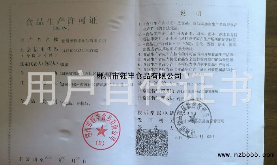 榮譽(yù)資質(zhì) 食品生產(chǎn)許可證(除乳制品、嬰幼兒配方乳粉、酒之外的生產(chǎn)許可證)