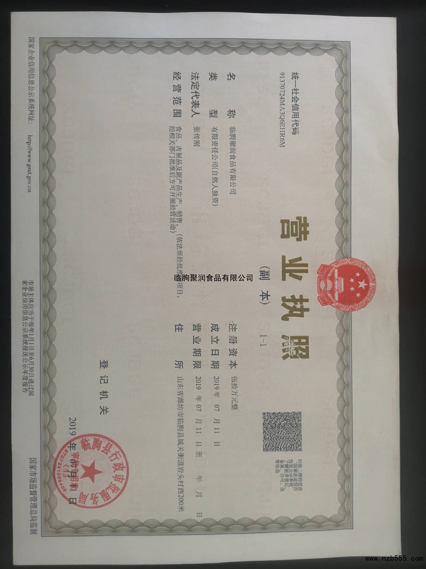 榮譽(yù)資質(zhì) 臨朐聚潤食品有限公司