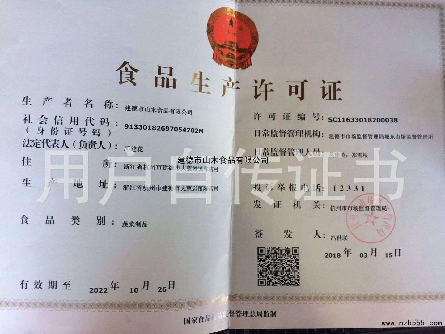 食品生產許可證(除乳制品、嬰幼兒配方乳粉、酒之外的生產許可證)