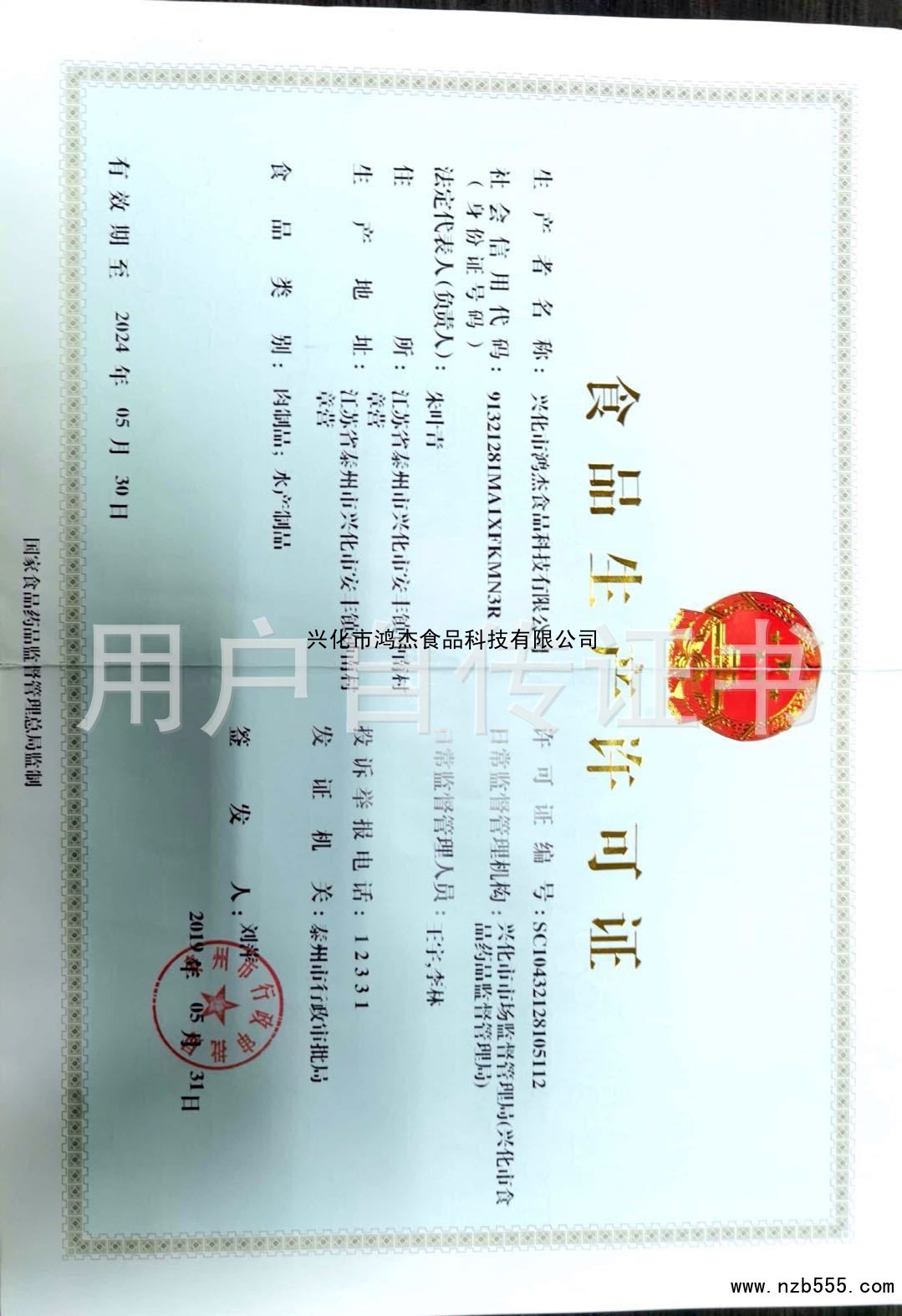 | 發(fā)證機(jī)構(gòu): | 泰州市行政審批局 | 發(fā)證時間 : | 2019-05-31 |