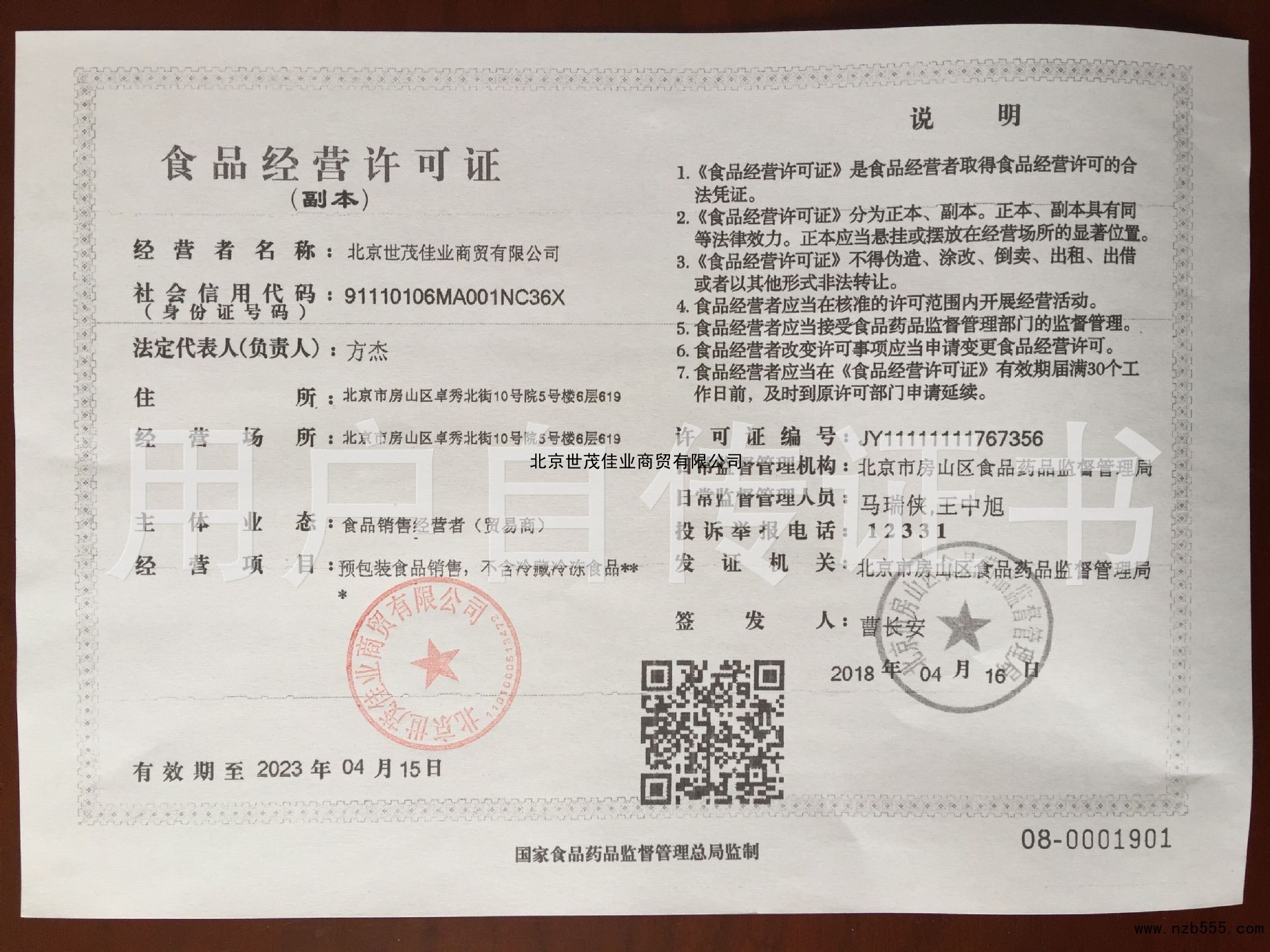 榮譽(yù)資質(zhì) 食品經(jīng)營(yíng)許可證(除乳制品、嬰幼兒配方乳粉、酒之外的生產(chǎn)許可證)
