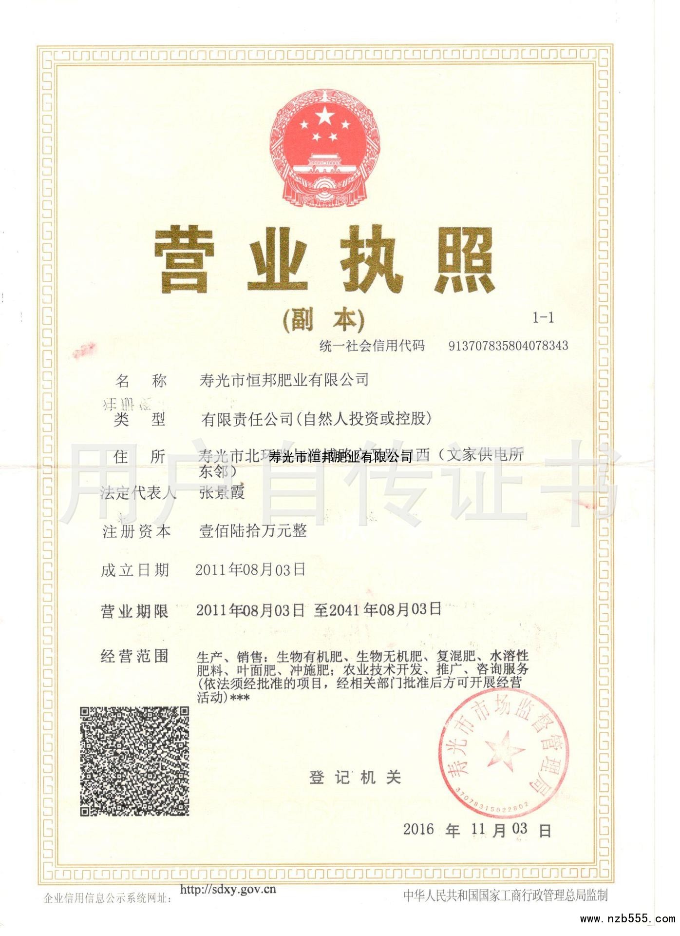 榮譽(yù)資質(zhì) 壽光市恒邦肥業(yè)有限公司