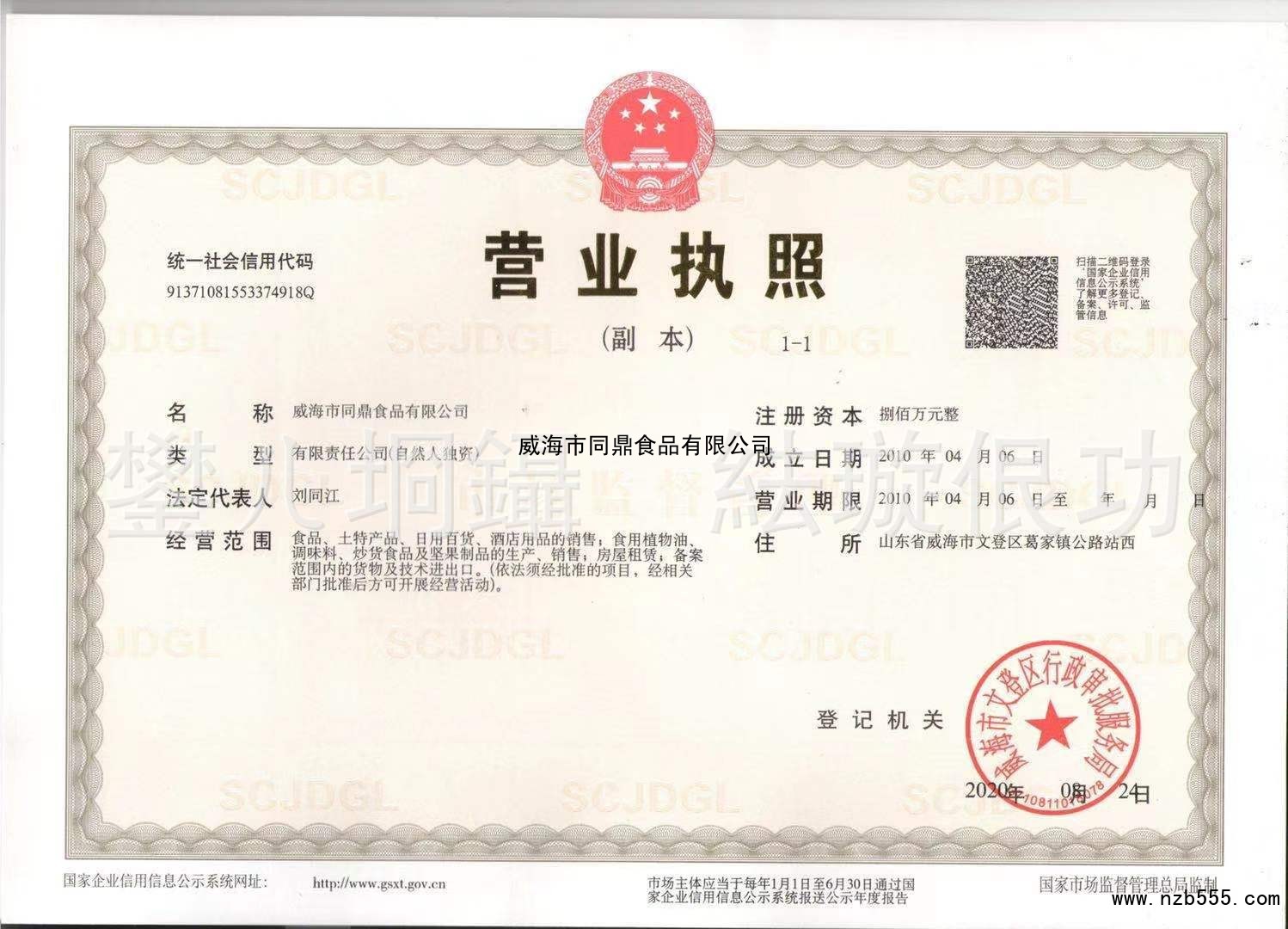 | 發(fā)證機(jī)構(gòu): | 威海市文登市行政審批服務(wù)局 | 發(fā)證時間 : | 2020-08-24 |