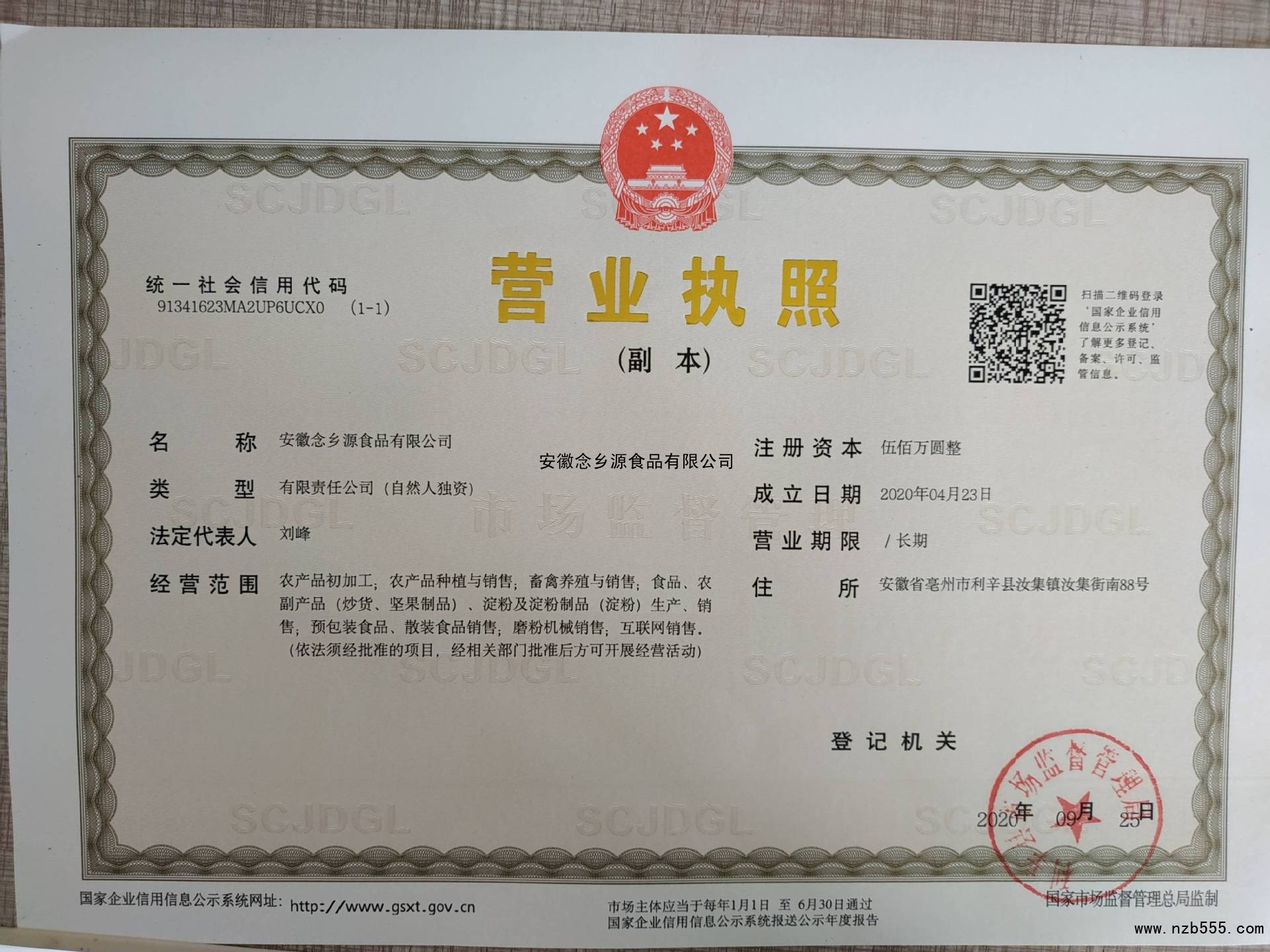 | 發(fā)證機(jī)構(gòu): | 利辛縣市場(chǎng)監(jiān)督管理局 | 發(fā)證時(shí)間 : | 2020-09-25 |