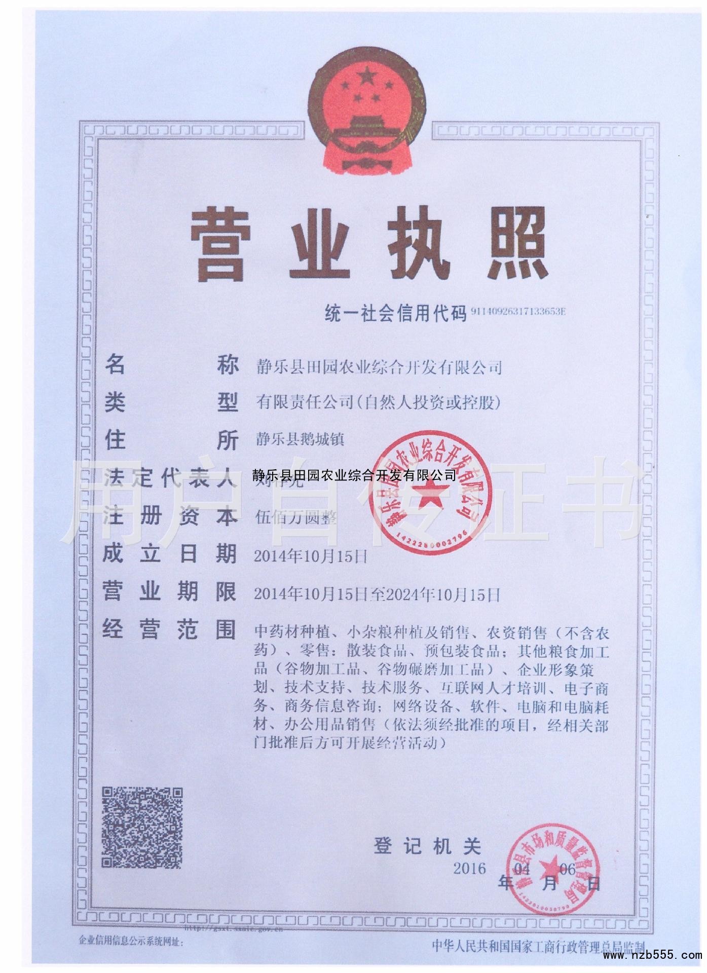 靜樂縣田園農(nóng)業(yè)綜合開發(fā)有限公司