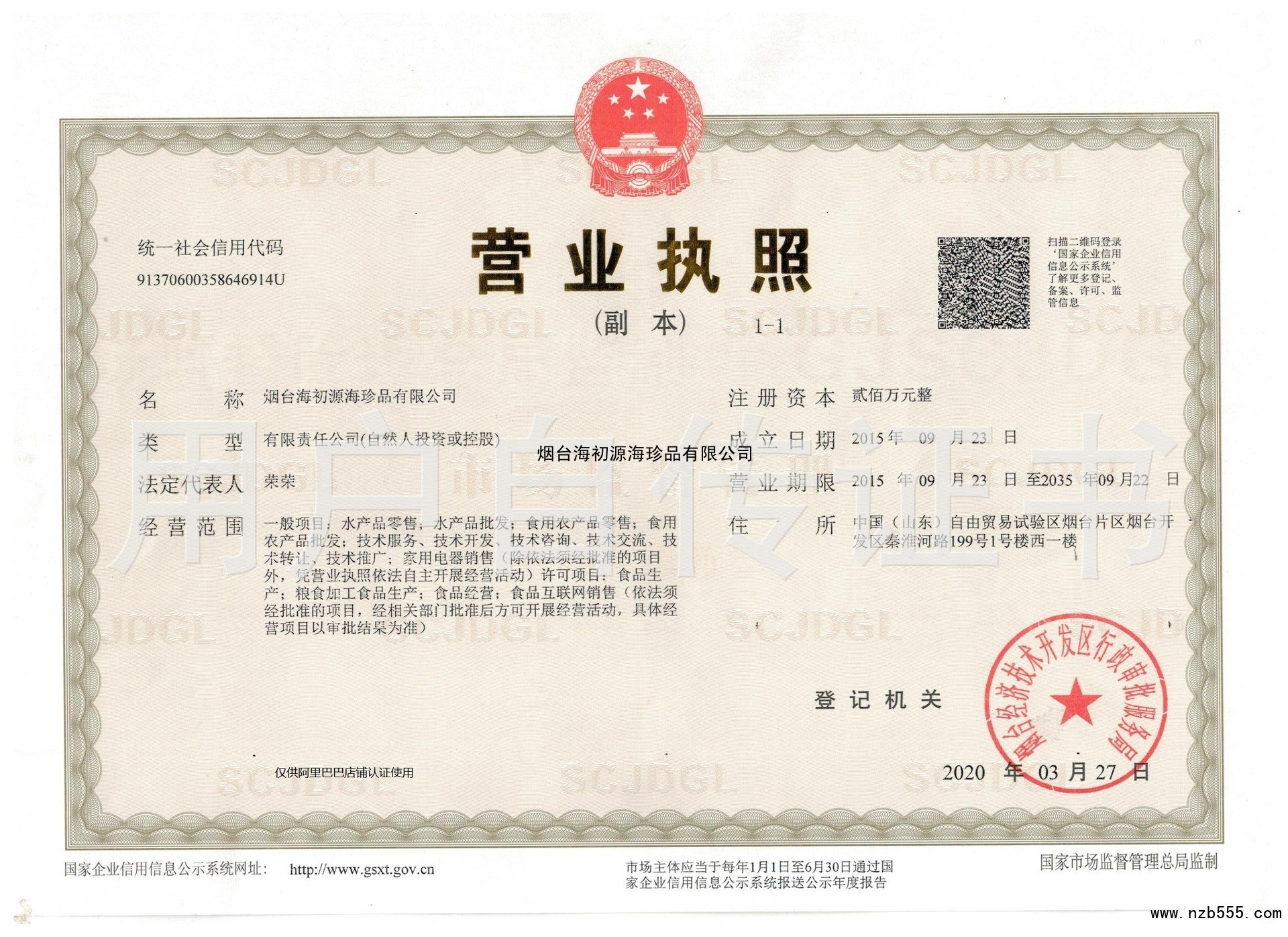榮譽(yù)資質(zhì) 煙臺(tái)海初源海珍品有限公司