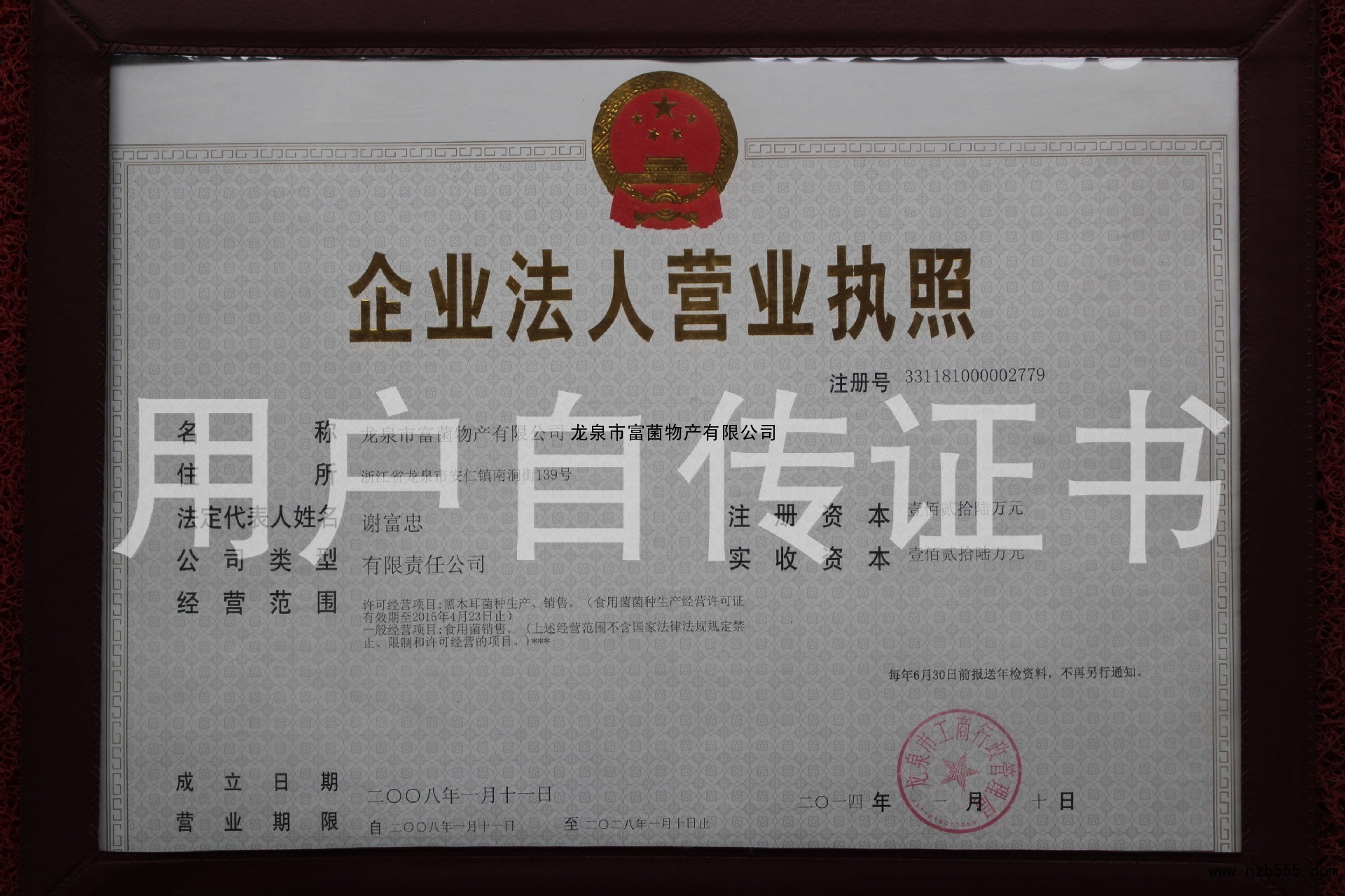 | 發(fā)證機(jī)構(gòu): | 龍泉市工商行政管理局 | 發(fā)證時(shí)間 : | 2014-01-10 |