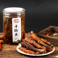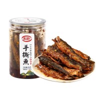 首頁 > 供應產品 > 湖南水府新鮮制作煙熏手撕香辣紅眼魚干干貨罐裝208g香辣手撕魚