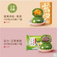 包裝規(guī)格【常規(guī)版】蛋黃肉松團*3盒,【經(jīng)典口味】蛋黃肉松*1+細沙*1,蛋黃酥*1+【常規(guī)版】蛋黃肉松*1,【經(jīng)典口味】蛋黃肉松*1+豆沙*2,蛋黃酥*1盒+細沙團*1盒,2口味蛋黃酥+2口味青團,麻芯青團*1+豆沙青團*2,【香甜豆沙】豆沙青團420g*2,肉松團*2盒+細沙團*1盒,【黑芝麻】麻芯青團420g*2