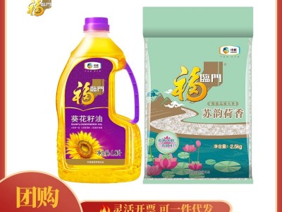 包裝規格組合裝福臨門葵花籽油1.8L+蘇韻荷香2.5KG,福臨門壓榨一級葵花籽油1.8L,福臨門蘇韻荷香米2.5KG