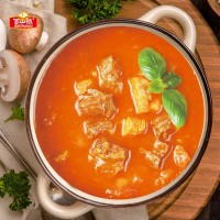原料與配料水,番茄,牛肉,雙孢蘑菇,黃油,大豆蛋白,洋蔥,土豆,胡蘿卜,芹菜,大蒜,白砂糖,食用鹽,天然香辛料