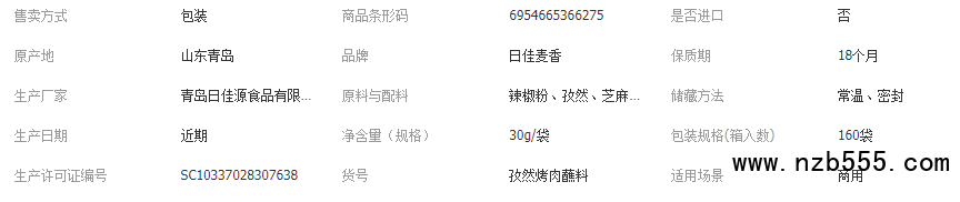 日佳麥香孜然烤肉蘸料延邊風味 羊肉串燒烤撒料30g×160袋/箱 2箱起批
