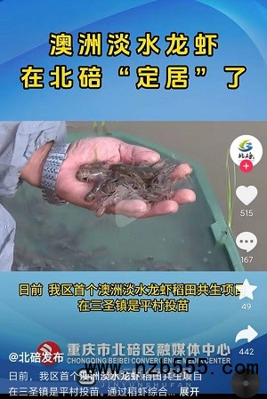 但是網友們很快就找到了證據——2023年8月9日,重慶市北碚區融媒體中心發布視頻稱,澳洲淡水龍蝦已經在北碚“定居”了,北碚區首個澳洲淡水龍蝦稻田共生項目在三圣鎮是平村投苗。通過稻蝦綜合種養,有效促進稻田生態系統的良性循環,讓糧食增產,農田增效,實現一田兩用、一水雙收。
