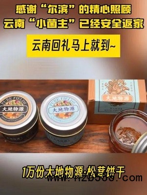 為感謝“老鐵”對云南“小菌主”的照顧,云南也連夜生產1萬盒非物質文化遺產鮮花餅和1萬份去過聯合國生物多樣性大會的松茸餅干送往“爾濱”。