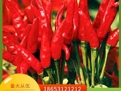 中熟品種,干制小辣椒,植株直立緊湊,株高90公分左右,花簇長果叢生,果實尖長細小,朝天生長,果長5公分左右,果類彎曲,呈子彈形狀,辣味濃,畝產干椒70-1000市斤。