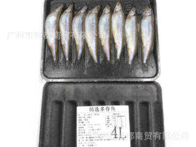 精選多春魚4L( 產地:佛山 長約12~13CM 約130~150克 8尾X30碟 )批發價:300元/盒;