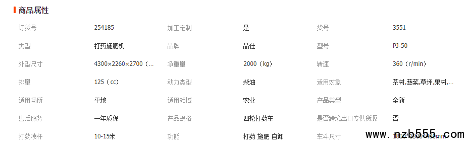 1.配套動力:50馬力四缸柴油機
