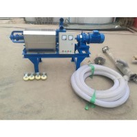 1、無堵塞泵將未經(jīng)發(fā)酵的豬糞水泵入機體,在振動電機的作用下加速落料,此時經(jīng)動力傳動,擠壓絞龍將糞水逐漸推向機體前方,同時不斷前緣的壓力,迫使物料中的水分在邊壓帶濾的作用下擠出網(wǎng)篩,流出排水管。