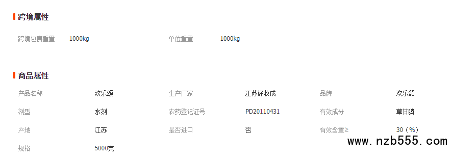 歡樂頌草甘膦銨鹽產(chǎn)品參數(shù)
