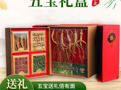 東北特產人參禮盒雙開折疊五寶禮盒產地直供鹿茸片鹿鞭片送禮佳品