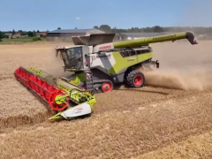 小麥收割作業,一小時收割90噸小麥,面積可達180畝